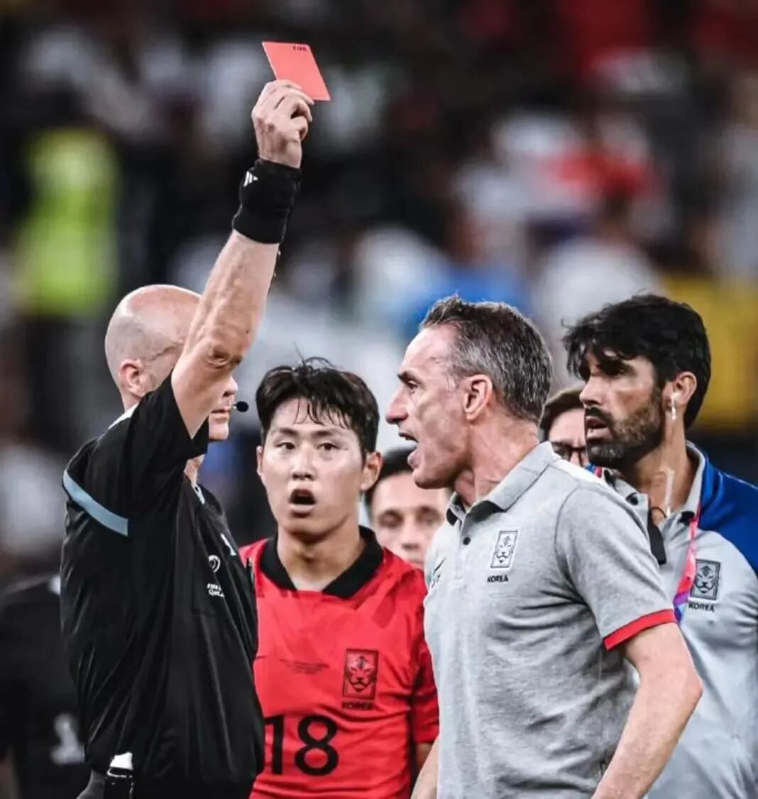 葡萄牙隊因為韓國隊員的一次假摔拿到了另外一張紅牌。